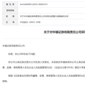 日前,上海证监局公布的沪证监决〔2025〕84号处罚决定书,公开点名老牌券商华福证券。
