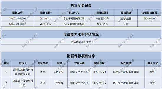距行家发现民生证券“遥遥领先”的“C类”保代名单已有多时。如今,这家已被合并的券商,又新增了两则保代违规记录。而具体的违规事项,却难觅踪影。