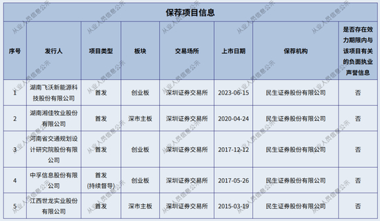 虽然民生证券C类保代约有1/3未公开披露违规项目,但从已知的情况来看,涉及广东奥迪威传感科技股份有限公司、迪嘉药业集团股份有限公司、大庆华理生物技术股份有限公司、上海恒业微晶材料科技股份有限公司、新乡天力锂能股份有限公司、广州思林杰科技股份有限公司、深圳华智融科技股份有限公司、杭州蓝然技术股份有限公司等IPO项目。