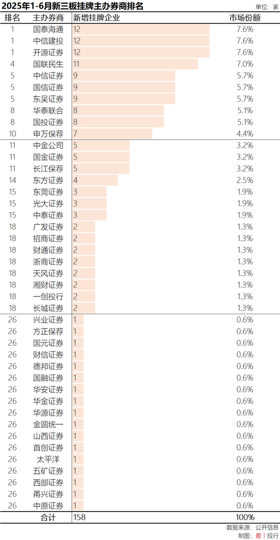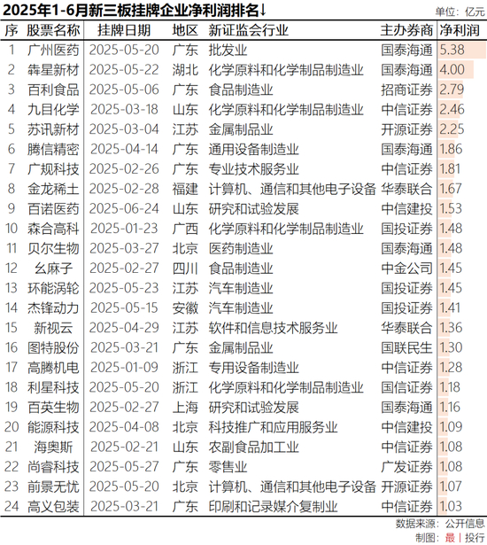 2025年1-6月新三板挂牌综述:净利润中值5000万,国泰、建投、开源并列第一