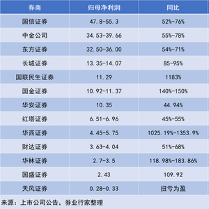 细看净利润增幅,两家券商创下十倍增幅,而最终的胜利者尚待揭晓。