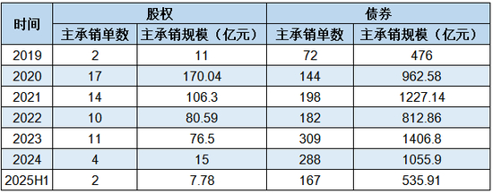 不过,在IPO及再融资放缓的背景下,近年来公司股权承销业务明显收缩,2024年股权主承销项目为4个,主承销金额15亿元,较2020年高峰期的主承销项目17个、主承销金额170.04亿元大幅下降。