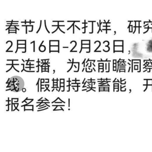 在社区平台,一张截图刷屏:春节8天不打烊,研究相伴不停歇!2月16日至2月23日,某证券总量团队8天连播,为您前瞻市场主线。