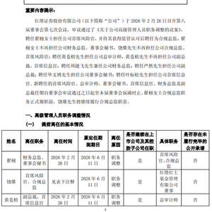 时间回溯至2025年9月,红塔证券官宣启动市场化高管招聘,曾经引发多方猜测。如今,红塔证券在2月26日召开的第八届董事会第七次会议,正式敲定这份高管调整方案。