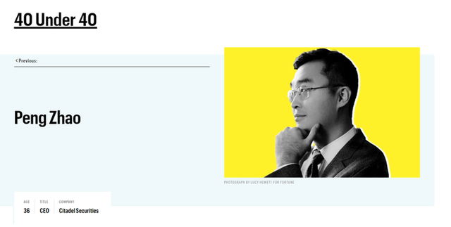 知情人士透露,在2009年金融危机后,赵鹏从上一任负责人手中接过了 Citadel HFT 高频交易团队的烂摊子,仅仅用了两年的时间便使其重新崛起。
