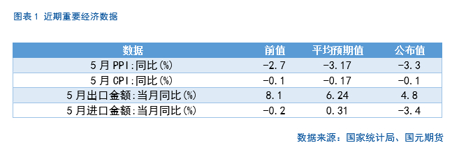 月工业品出厂价格(PPI)同比下降 3.3%,跌幅不仅大于上月的 2.7%,也超过市场一致预期的 3.17%。国际油价、黑色金属和化工品在4-5 月普遍回调,加之去年同期基数走高,使上游价格再度下探。与此同时,房地产链需求偏弱、出口增速下滑,令企业缺乏议价能力,产成品价格难以企稳。居民消费价格(CPI)同比仍为-0.1%,与上月持平,略好于预期,却仍停留在轻度通缩区间。CPI环比由涨转降主要受能源价格下降影响。能源价格环比下降1.7%。剔除食品和能源后的核心CPI则同比上涨0.6%