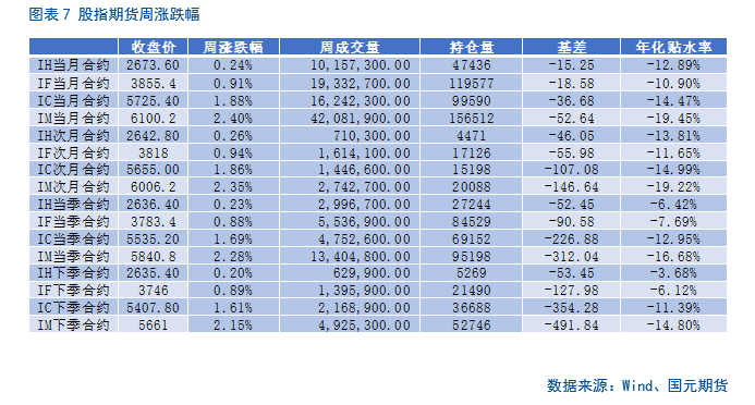 上周股指期货全线上涨,小盘风格更为强势。各指数远月合约贴水幅度普遍有所收窄,但依旧处在相对较高水平。显示市场对冲需求依旧较大,同时市场当前情绪偏谨慎。IM/IH目前处在近年中等偏高水平。