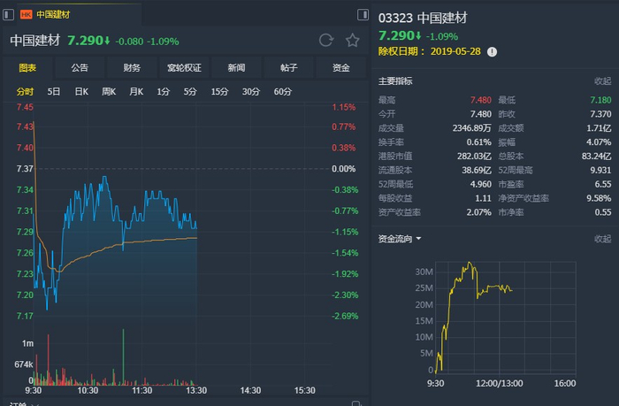 瑞信:维持中国建材(03323)“跑输大市”评级 目标价6.6港元