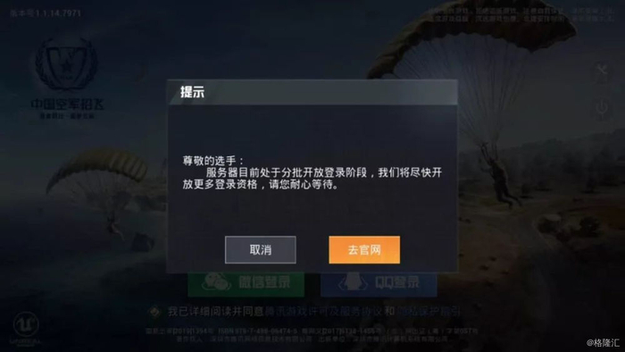 有玩家尝试登陆和平精英,系统提示道:“服务器目前处于分批登录阶段,我们讲尽快开放登录资格,请您耐心等待。”