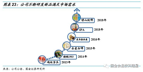 研发新品满足消费需求:随着消费换代、消费习惯和偏好变迁,啤酒行业也需要不断研发新品满足消费需求。公司近几年以高端、健康、时尚为核心诉求点,研发了精酿1903、全麦白啤、IPA和崂山玩啤等新品,丰富产品矩阵,吸引更多消费人群。公司强大的研发能力也使得其能更快的响应市场需求,以产品紧跟行业发展,与行业共同成长。
