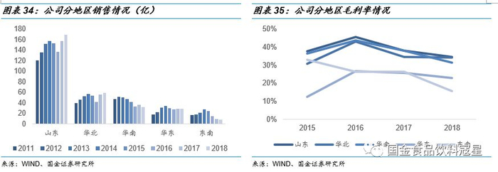 1、巩固基地山东市场:山东是公司的大本营市场,贡献超过50%的收入。山东是全国啤酒产量第一、人均消费量靠前的省份,经过多年发展公司在山东占据绝对的优势地位,未来仍将不断巩固山东大本营市场的份额,挖掘更多市场机会和消费需求。
