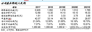 我们预计公司2019-2021年的收入分别为278.7亿\/293.3亿\/310.0亿,同比增长4.9\/5.2%\/5.7%;归母净利润分别为17.3亿\/20.4亿\/23.8亿,同比增长21.7%\/18.2%\/16.7%;EPS分别为1.3元\/1.5元\/1.8元;对应PE为41X\/35X\/30X。我们给予公司2019年48倍估值,对应目标价62元,首次覆盖给予“买入”评级。