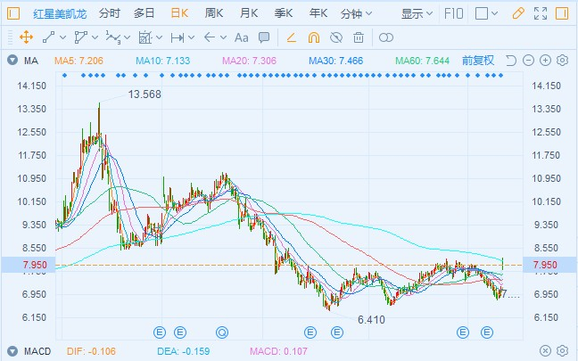 受到与阿里联姻的消息刺激,截至2019年5月16日收盘,红星美凯龙(01528)港股报7.95港元,涨10.42%,A股开盘直接封涨停板。