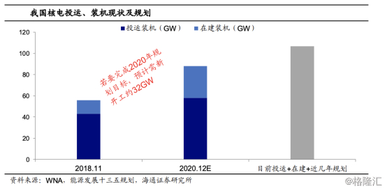 2016年至2018年期间,受电力需求增速放缓、三代核电技术未投产以及福岛核事故对公众影响尚未彻底消除等因素影响,中国连续3年未批准新建核电项目。2018年,电力需求增速抬头、以AP1000、EPR为代表的三代核电技术相继投入商业运营,三代技术的可行性和安全性得到初步验证,且中国自主知识产权的华龙一号三代核电技术示范堆建设进展顺利,2011年福岛核事故的影响逐步远去,中国的核电建设已具备重启快速发展的条件。