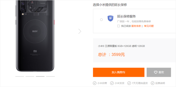 但是在小米商城上,另一款4月初发售的小米9王源限量版,外形与小米9透明尊享版一致。