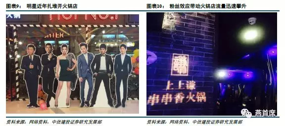 中高端火锅及受欢迎程度较高的火锅在品牌塑造上均投入较多精力,近年来许多明星开始扎堆开火锅店,也是为新建的火锅品牌迅速注入品牌流量效应,通过自身的影响力和流量为品牌赋能。随着中高端火锅品牌进驻大型商业中心及核心地段,火锅的品牌价值将成为火锅企业的核心价值。
