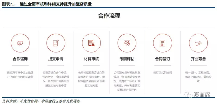 不仅有专业团队接洽,并且会进行深入详细的调研,审核完备的手续,并在正式合作的一段时间内提供包括品牌服务、团队搭建、餐厅统一标准构建、员工培训等一系列专业的支持,同时在正式经营之后总部也与加盟店间建立良好的沟通机制和互相监督机制,在一定程度上加强了加盟店的可控性和质量保证。