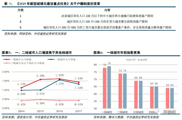 尤其根据日前发布的《2019年新型城镇化建设重点任务》,城区常住人口100-300万的II型大城市要全面取消落户限制;城区常住人口300-500万的I型大城市要全面放开放宽落户条件,并全面取消重点群体落户限制。从国内目前整体发展趋势看,以京津冀、长三角、粤港澳为代表的大型都市带仍是,并将长期是未来中国经济发展的强力引擎,且发展优势有望逐步增强,人口聚集效应明显。另外,年轻群体本身的择业需求、发展需求也使得一二线城市目前的年轻化指数更高。人群的聚集效应和年轻化趋势预计使得一二线城市,尤其是二线城市的人口迎来进一步上涨,
