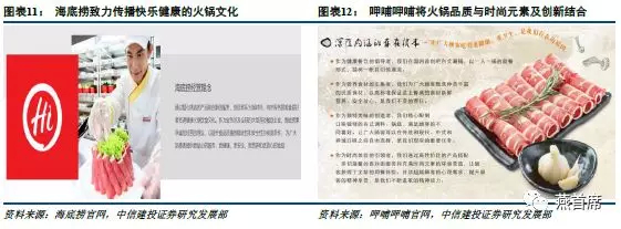 在火锅口味和品质较优质并被市场承认的基础上,火锅企业若想进一步提升品牌价值,需要在经营理念和品牌故事内涵的角度进行深耕,目前国内的火锅龙头如海底捞和呷哺呷哺已开始在品牌文化角度进行深度培育,对于市场认可度的进一步提升和品牌价值的提炼意义重大。