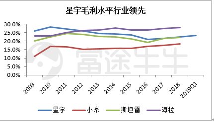 过去十年星宇毛利率一直在25%上下,甚至和全球巨头比较也不逊色,而下游整车丰田、大众汽车毛利率一般在18%,车灯反而是格局比较好的行业。