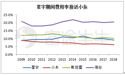 星宇对三费的管控能力较强,接近日系龙头小糸。