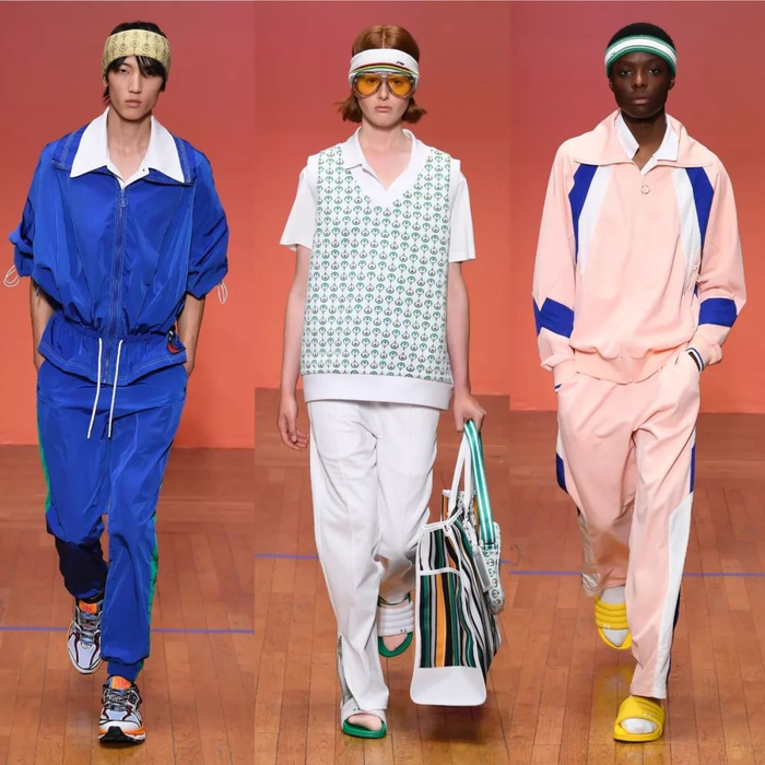 图为李宁2020春夏系列,主要从乒乓球等运动中吸取灵感,巧妙融合了复古和未来感