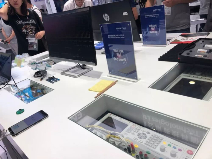 展会上,移芯通信对NB-IoT单芯片EC616的性能进行了动态展示。现场展示实测数据为Idle电流0.12mA( vs 竞品1mA)、接收电流12mA( vs 竞品 32mA)、接收灵敏度-118dBm( vs 竞品:-114dBm)。这种区别于其他展商常规静态展示的新形式,以及颠覆业界认知的全球最优通讯性能、全球最低功耗的实测数据,吸引了众多客户与投资人慕名而来。