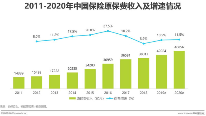 我国的保险行业经历了2011年到2017年的高速增长时期,原保费收入复合增长率高达16.9%,但到了2018年,在监管主动进行业务结构调整的背景下,保费收入增长仅3.9%,行业进入发展平缓期,过去粗放式的发展模式已经不适合未来行业发展需要。因此,在产品和渠道创新上深耕细作,同时提升服务水平,加强保险科技赋能将是未来行业发展的主旋律。