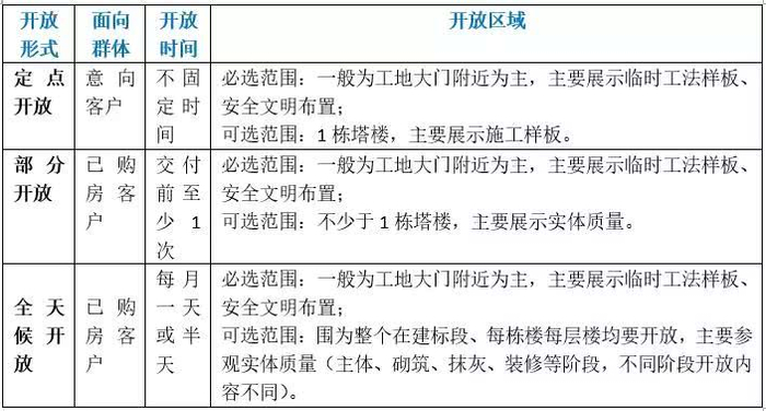 工地开放是一种选择性的开放,不能也不可能把工地全貌对业主公开。要记住的是,工地开放是一种手段。促进工地管理规范化,在购房人群中形成良好口碑才是工地开放的目的。开放的范围、开放的内容及展示的形式,都是围绕这一目的而展开的。