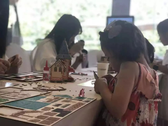 万科金域蓝湾组织客户参观完工地后,在客户休息区组织了一场拼房子DIY手工课堂,让大家“活学活用”,手工制造出一个个房子模型。现场还贴心的为业主准备了精美的夏日特饮以及茶歇,为工地开放活动划伤圆满句号。