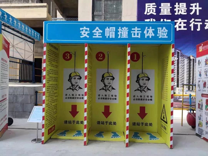 这种方式平时用来给施工人员做施工危险培训,让他们在施工过程留心可能出现的危机。业主在参与体验,可以充分感受工地对安全施工的重视。