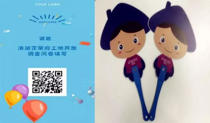 为方便业主后续反馈意见,工作人员将问题反馈二维码印制在荣宝扇子上,业主直接扫码即可线上反馈问题,对活动做评价。