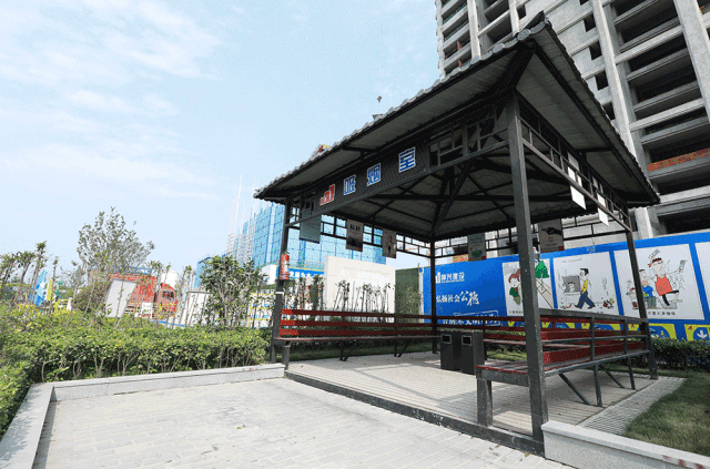 绿城九龙仓·杭州桂语朝阳就向业主开放了施工工人日常使用的设施设备,包括为工人独设的洗手池、茶水亭、吸烟室、地下球场,彰显出绿城工地的人文关怀。
