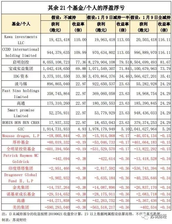 其余的股东看不出来减持变化,我们按照未减持 / 减持一半 / 全坚持的 3 种情景,测算其他 21 个基金 / 个人的收益率。若减持,都假设与 DST 相同,在 1 月 9 日解禁日当天减持。