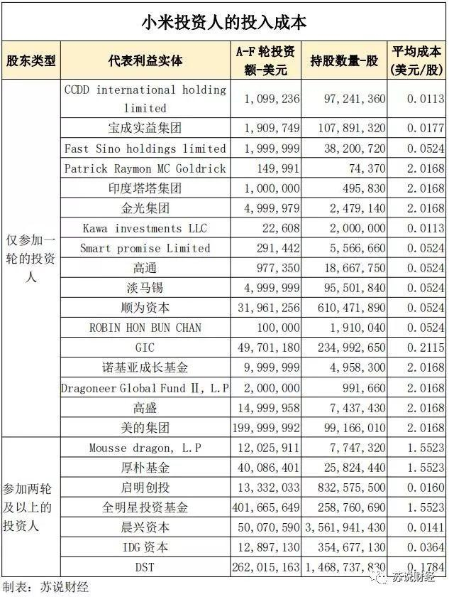 所以,第一类投资人与小米的关系都较为密切。而A类和B类股票,很可能是按照股票面值发行,成本可以忽略不计。