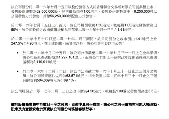香港某券商投行人士向记者表示,“金利丰最开始主要帮小型公司做保荐人及包销商,还有融资服务,并在上市时拿一定的股份,之后会做卖壳一条龙服务,他们会向这些公司提供律师、会计师,有专门的服务团队,有一些公司上市初金利丰就会帮他们找到1年后卖壳的买家,但这些股最好不要碰,多有坐庄嫌疑。”
