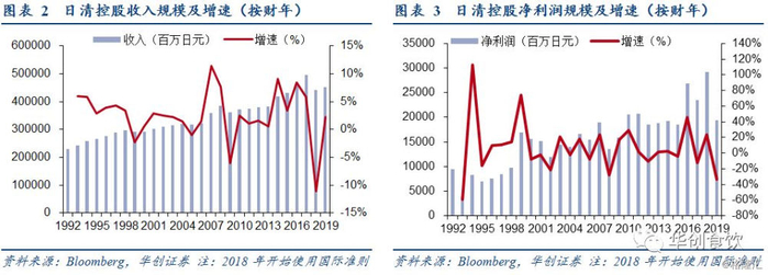 日清控股是日本方便面行业龙头。日清分别于1958年与1971年发明了世界上第一款方便面和杯面,之后不断丰富速食面产品种类,在日本具备极高的品牌知名度,年可销售58亿个方便面。公司2019财年实现营业收入4510亿日元,同比增长2.3%,经营利润290亿日元,同比下降17.6%,归母净利润194亿日元,同比下降33.6%。利润下降主要系美洲业务利润下滑及部分资产减值等综合影响所致。公司2019财年经营利润率6.4%,净利率4.3%,ROE为5.9%。