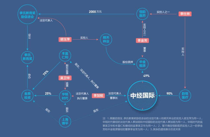 金智科技(002090,SZ)曾经发布的一份《中国金融租赁有限公司2015年度财务报表审计报告》显示,截至2015年末,中金租赁的预付融资租赁款单位中,前十位承租人中有7家均与李金芳有着直接或间接、甚至隐秘关系。包括李仕林实际控制的四川自豪时代药业有限公司和无锡恒韵资产管理有限公司,中金租赁的两大股东中经国际和天津新金融,华铭时代的全资子公司昆山花安投资管理有限公司,胡玉萍曾担任股东和副总裁的江苏天坤集团有限公司,以及*ST华业。