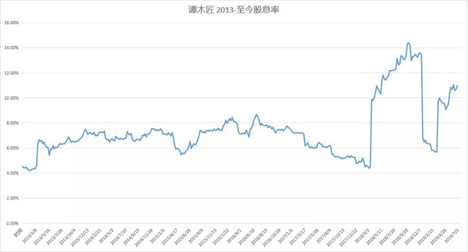 特别股息对公司的估值具有怎样的影响呢?我们看2013年之后公司的市盈率曲线图,便一目了然。