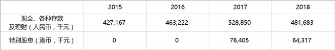 2018年末公司一年期以上理财6500万、短期理财3.7亿、现金4600万,还有未来继续实施特别股息的能力。
