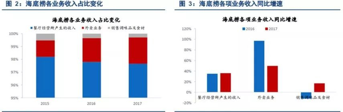 1、海底捞的不同业务收入