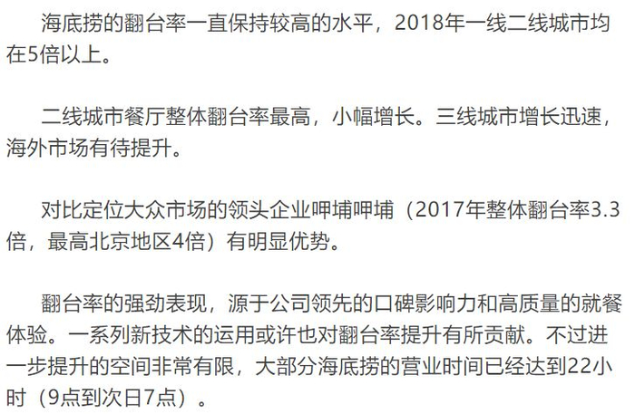 海底捞的周转率及资金