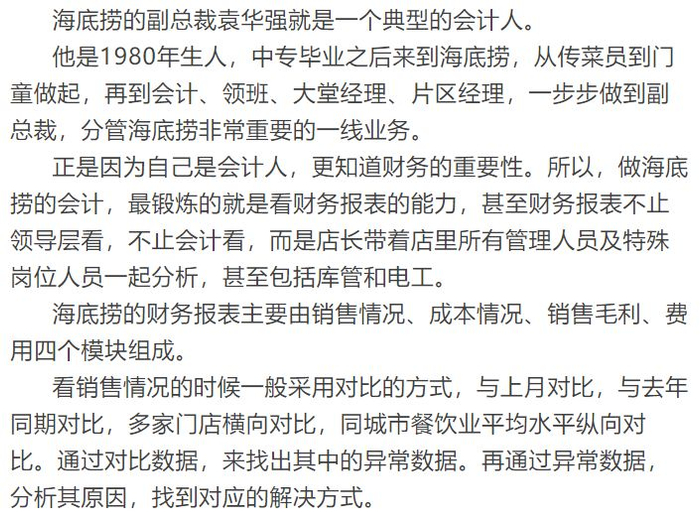 海底捞的财务体系