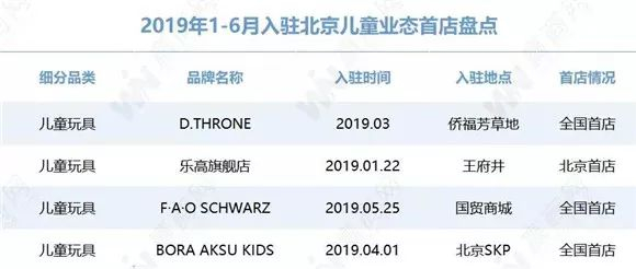 此外,上半年入驻的儿童业态品牌还包括国际轻奢家庭移动车品牌D.THRONE,以及英国设计师品牌BORA AKSU 旗下的儿童服装BORA AKSU KIDS,这两个品牌都有共同的特点就是针对注重品质的高消费家庭,而且都是作为中国首店入驻北京,将会对儿童业态的多元化发展,以及亲子消费升级带来一定影响。