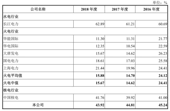 报告期内,核电行业整体毛利水平低于水电行业、高于火电行业,主要因为核电行业在上网电价政策、成本构成等方面与水电行业及火电行业存在较大差异。报告期内,公司综合毛利率高于行业平均水平及中国核电。