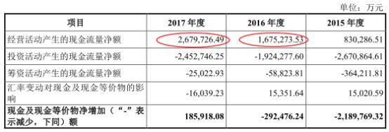 2018年6月19日报送的招股书显示,中广核电力2016年、2017年实现经营活动产生的现金流量净额分别为167.53万元、267.97万元。