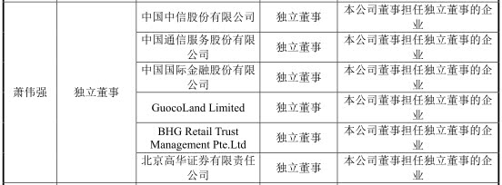 此外,萧伟强还担任中国中信股份有限公司、中国通信服务股份有限公司等在内的多家企业独立董事。