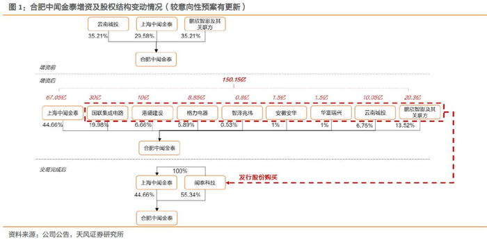 前次意向性预案中,国联实业增资20亿元将由其关联方国联集成电路增资30亿元代替,同时肥东产投、工银亚投不再参与此次交易。