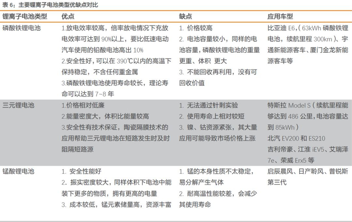 从新能源汽车电池类型上来看,新能源汽车中的电池包括酸铅电池、镍氢电池、锂离子电池等。目前,锂离子电池(锂离子电池和锂聚合物电池)除在价格和安全性方面处于劣势以外,其他方面均处于领先地位,目前已经逐渐成为主流的新能源汽车电池形式。而创新性锂聚合物电池将会是未来研发重点。此外镍氢电池则主要存在于混动车型中,铅酸电池则作为传统燃油汽车设备供电装置中。