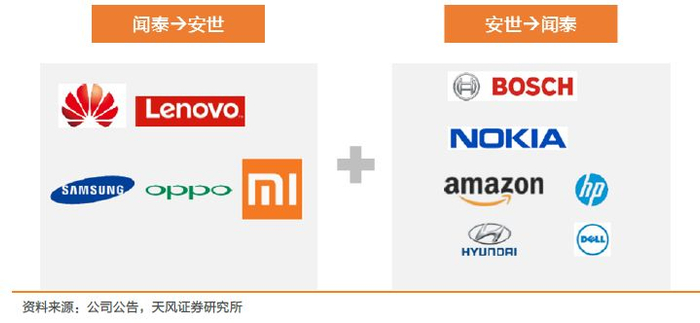 闻泰帮助安世扩大消费电子产品市场份额。闻泰科技主要客户为国际知名电子品牌厂商,其产品包括智能手机、智能硬件及笔记本电脑等,安世所生产的电子产品核心元器件广泛应用于上述消费电子及计算机产品中,闻泰科技可将安世的产品大量引入到全球知名的手机、平板电脑、笔记本电脑、智能硬件等品牌客户当中,帮助安世在消费电子、IoT、笔记本电脑市场领域扩大市场份额。